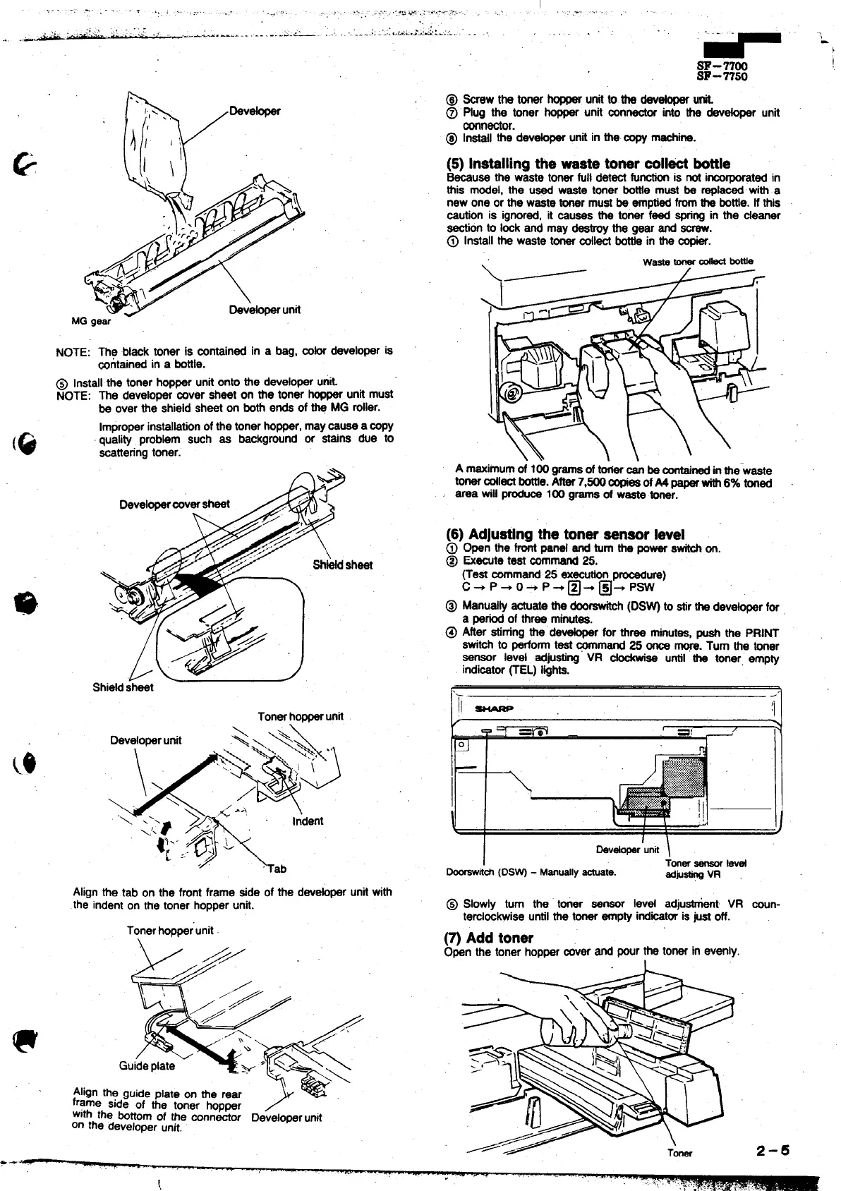 NOTE: The bl=k toner is mntained in a beg, mb developer is