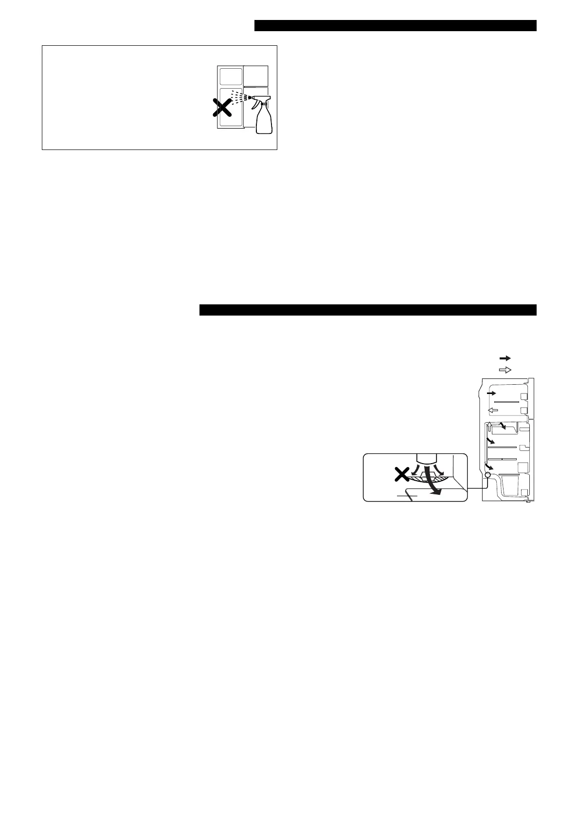 • Do not place food directly in front of cold