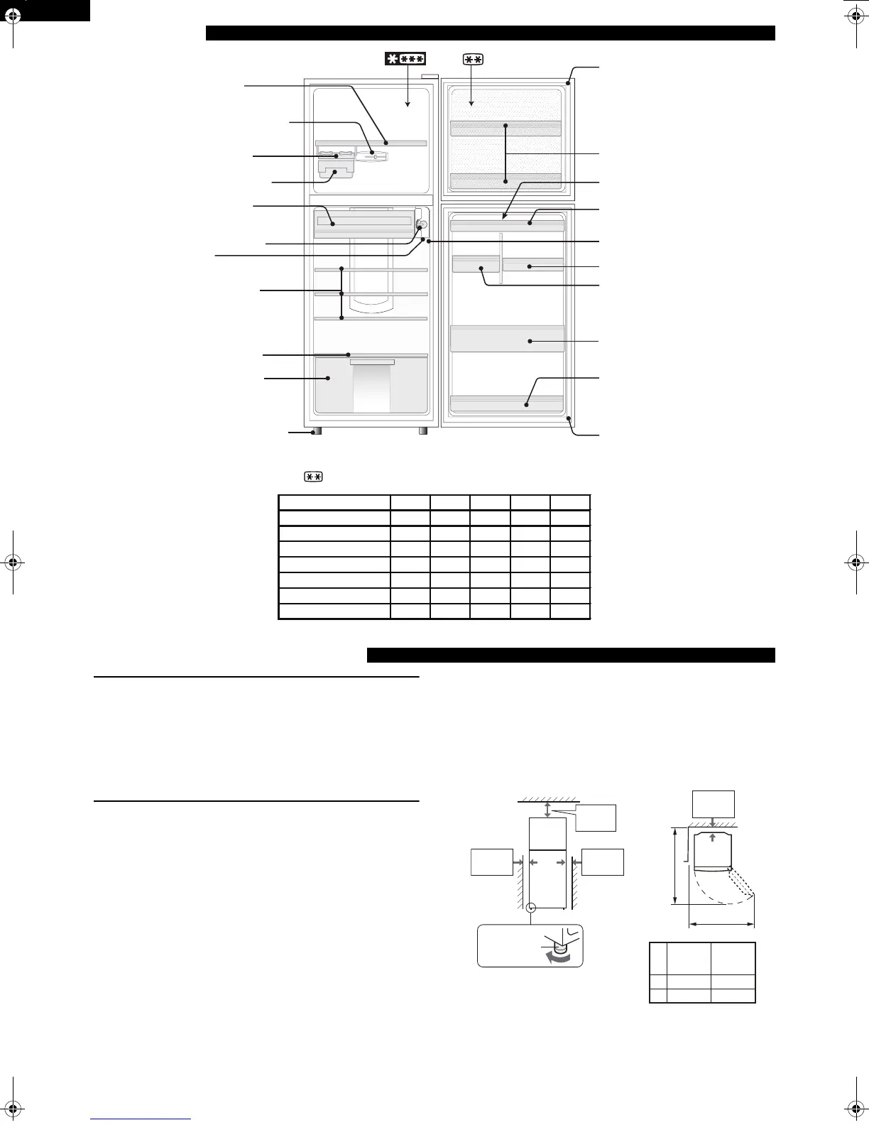 • A két csillaggal jelölt rész csak fagyasztott élelmiszerek tárolására szolgál.