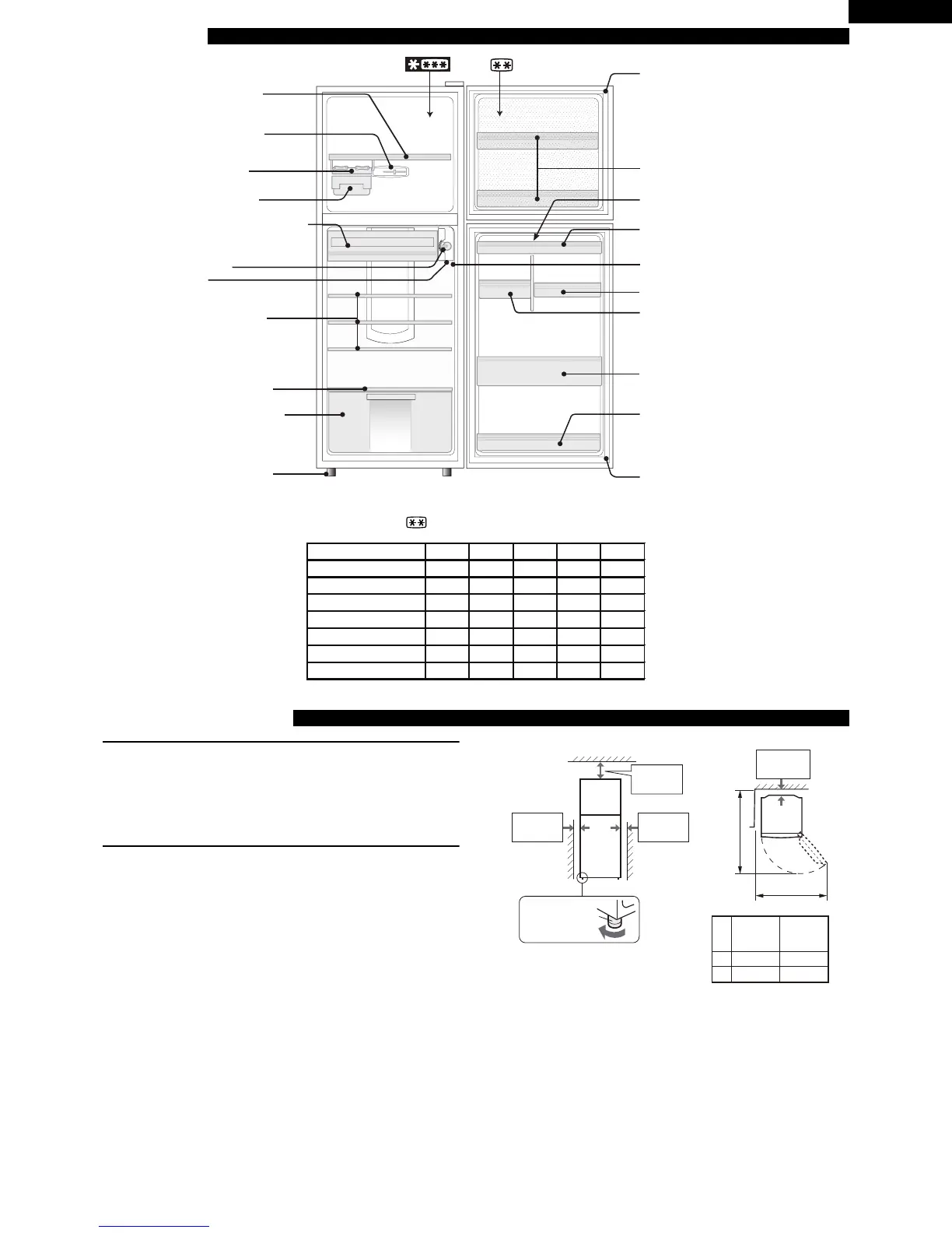 • Sekcia s 2 hviezdičkami len pre uskladnenie mrazených potravín.
