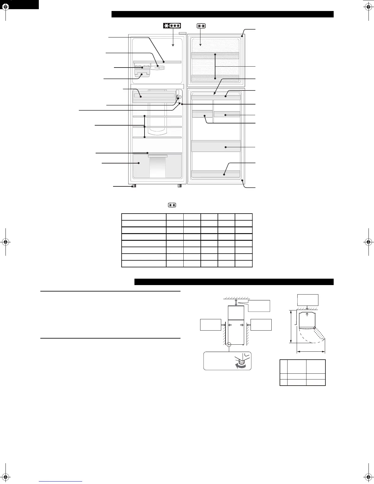 • 2 tärniga tähistatud sektsioon ainult külmunud toiduainete hoidmiseks.