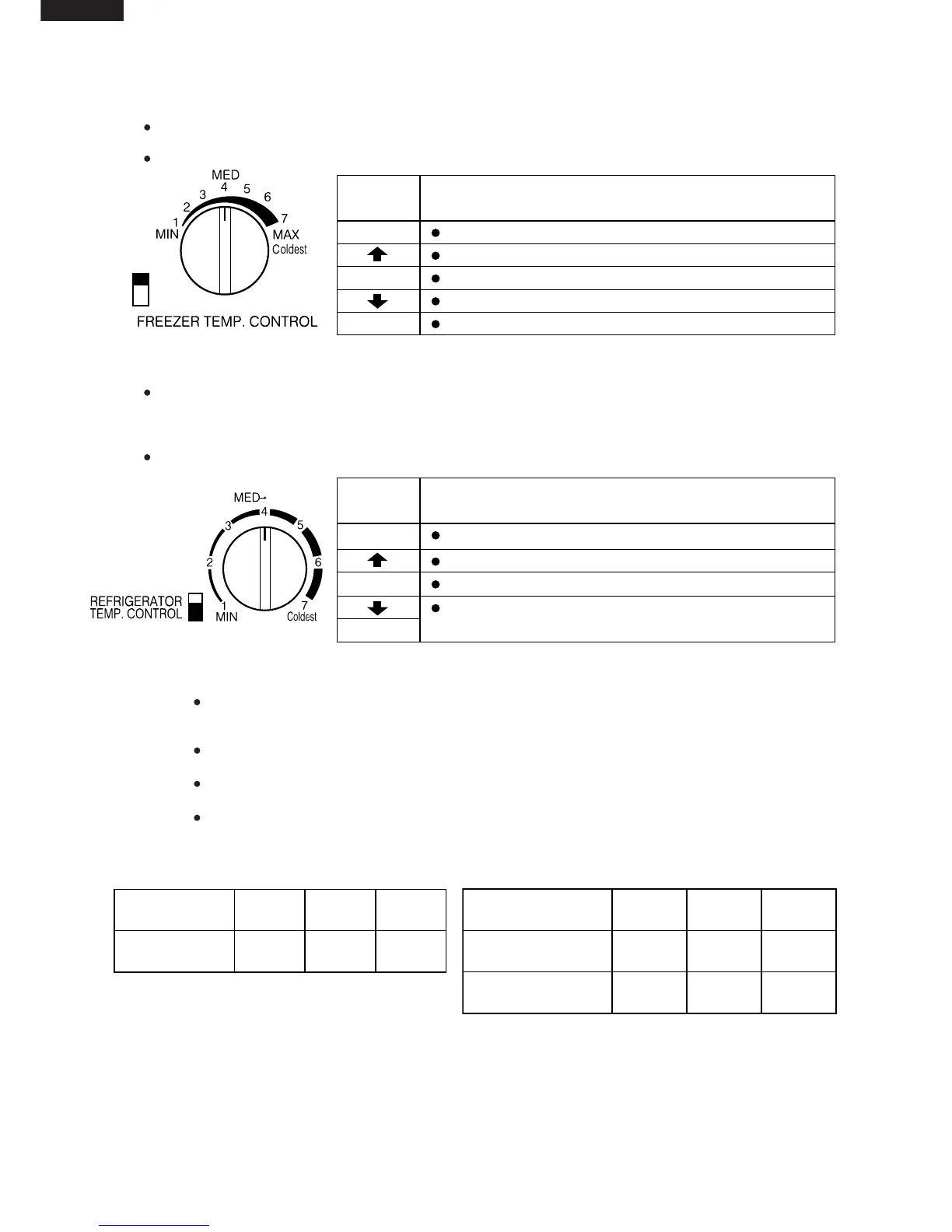 NOTE: The refrigerator temperature is affected also by the freezer temperature. If the freezer temp.