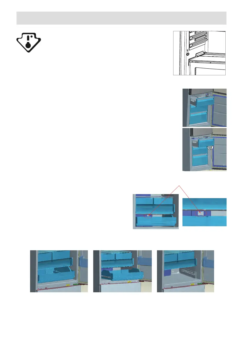 • For at fjerne isbakken skal den øverste fryseboks trækkes så langt ud som muligt,
