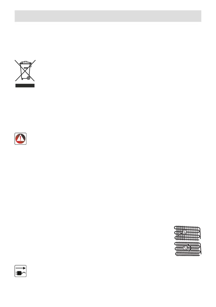 • Når apparatet skal kasseres, må den elektriske ledningen kuttes og pluggen og kabelen må ødelegges. Fjern