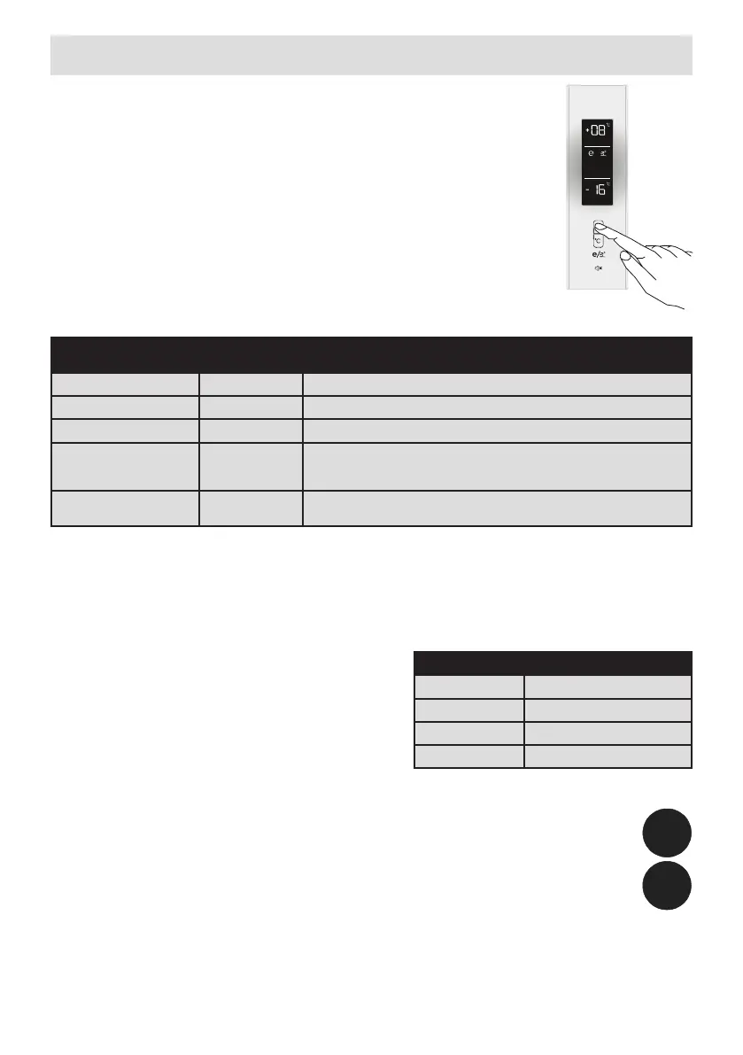 • Whenever you press on this button a lower temperature will be set. (+8°C, +6°C, +5°C,