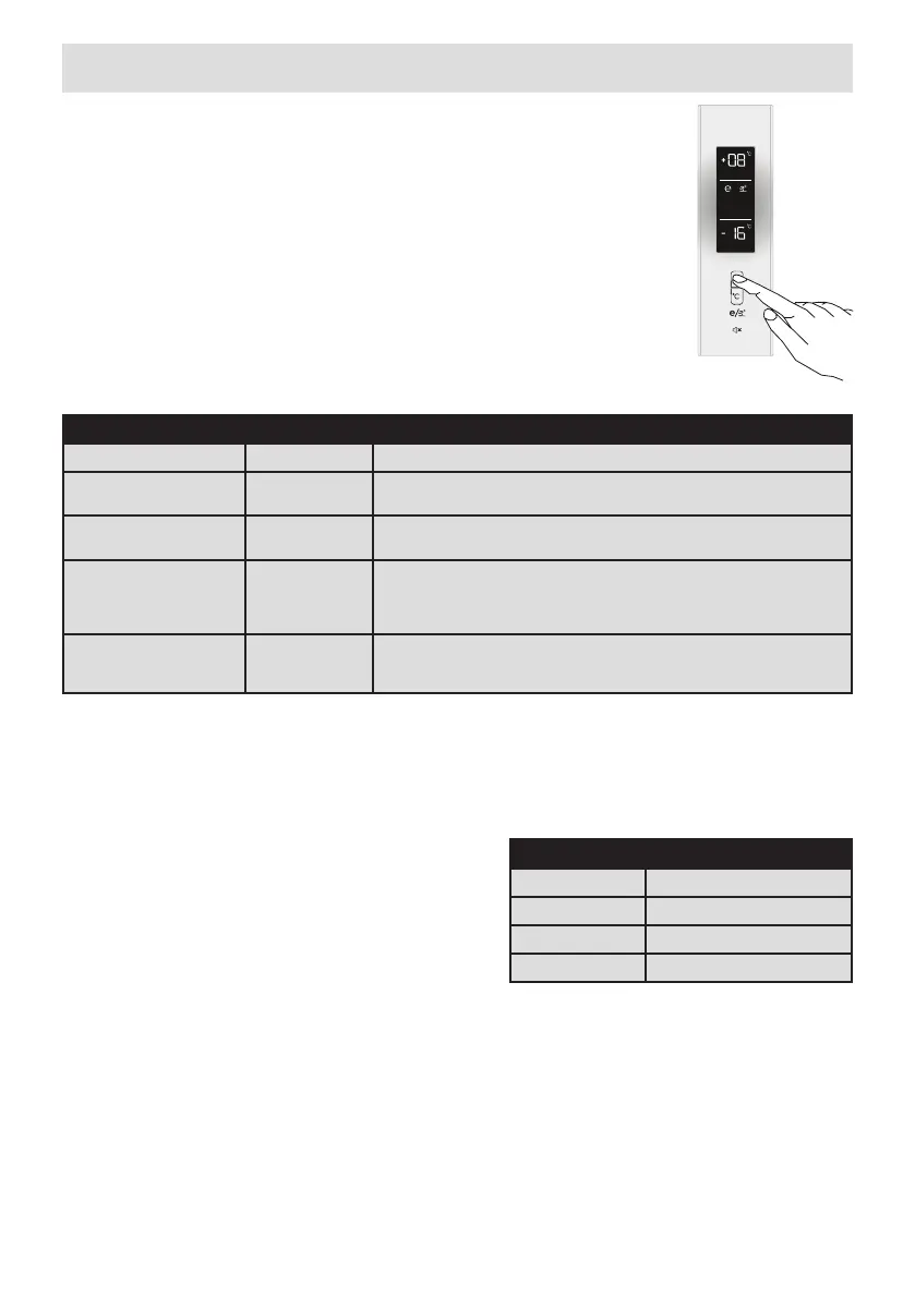 • Wenn Sie weiter drücken, beginnt die Anzeige wieder ab +8°C.