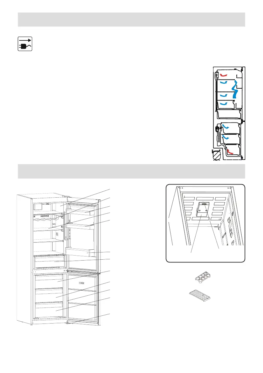 Denne gur er blevet udarbejdet til orientering for at vise de forskellige dele og tilbehør i kølefryseskabet.