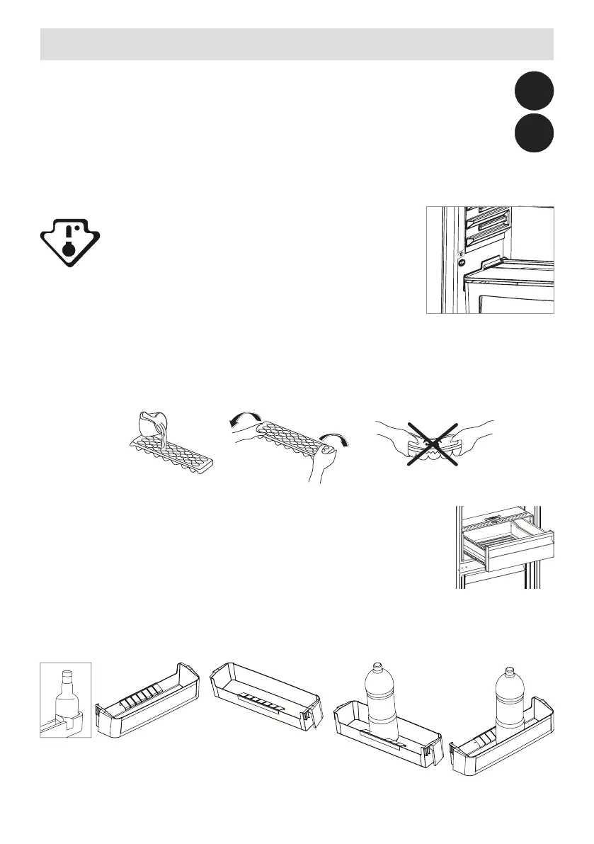• Kun vesi on täysin jäätynyt, voit taivuttaa rasiaa alla olevan kuvion osoittamalla tavalla poistaaksesi jääkuutiot