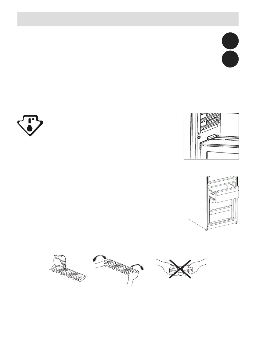 • Cuando el agua se haya transformado en hielo completamente, puede retorcer la bandeja tal como se indica