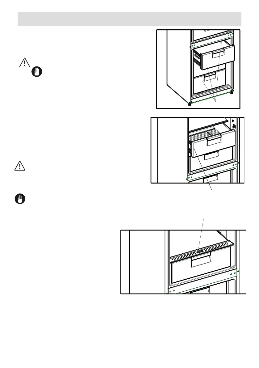 • Puxe a parte da frente da gaveta para cima e para fora