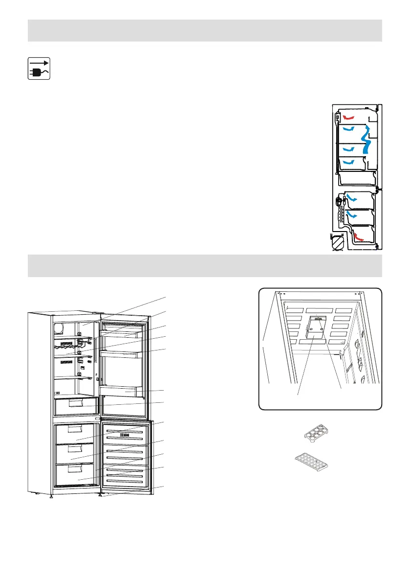 Inddelingen af køleafdelingen vil være næsten den samme som i fryseafdelingen. Luften fra
