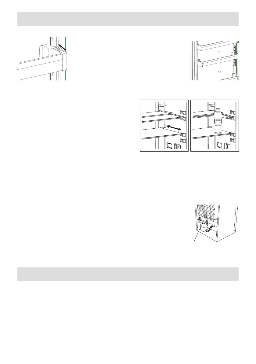 Bemærk: Før den bevægende dørhylde er læsset, skal du holde fast i hylden ved at støtte bunden. Ellers kan