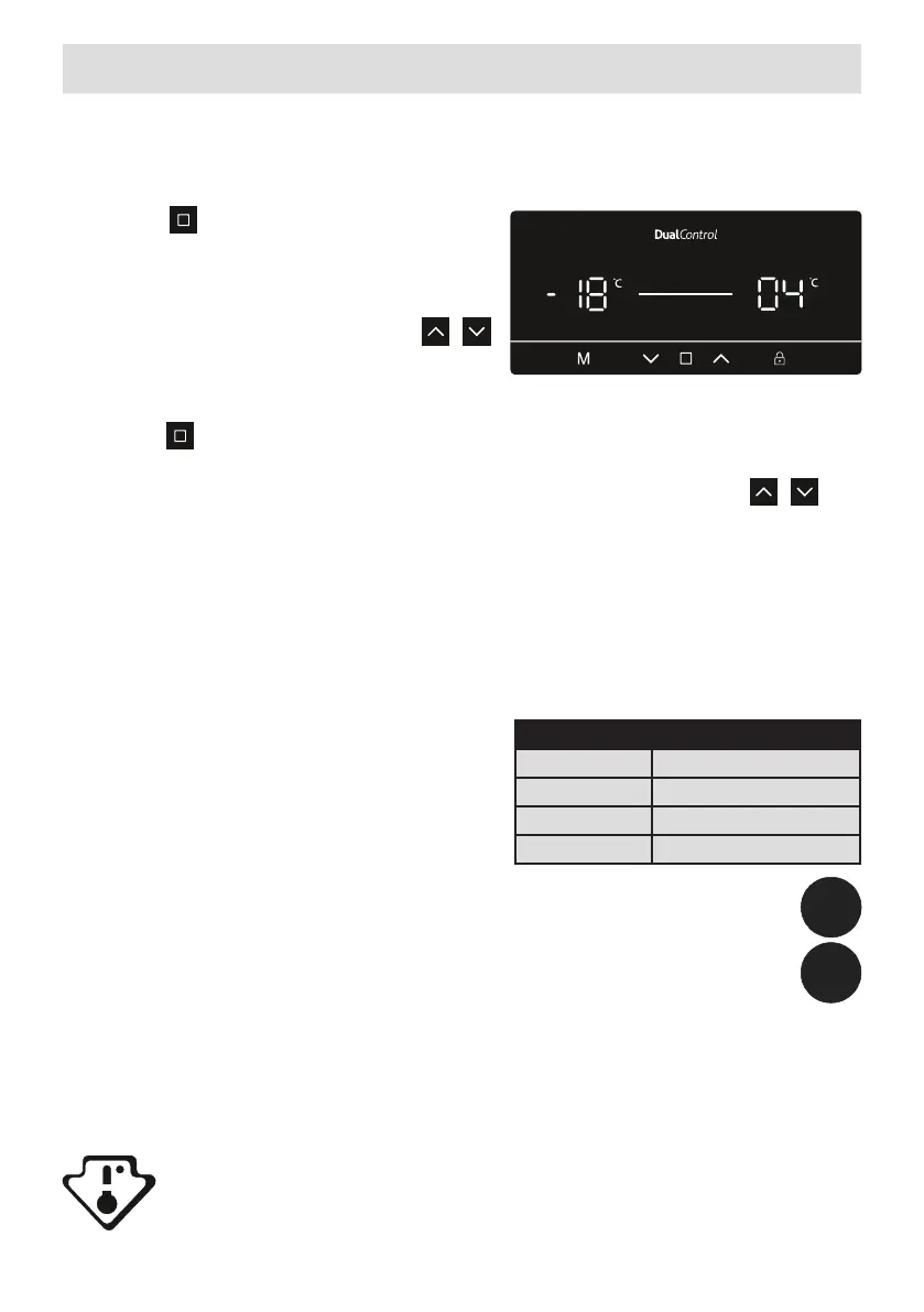 • Tryck på -ikonen (9 på kontrollpanelens diagram) tills kylens temperaturinställning är vald (1).
