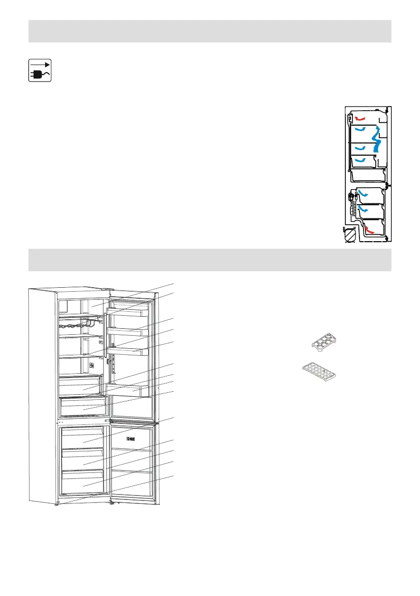 • Saatat huomata lievän hajun käyttäessäsi jääkaappipakastinta ensimmäistä kertaa. Tämä on täysin normaalia ja