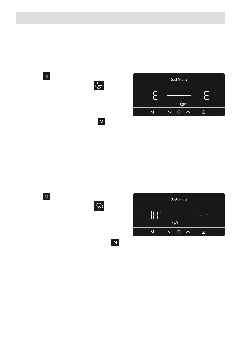 • Pikajäähdytys tai tehopakastus voidaan valita, mutta jommankumman tilan valitseminen poistaa eko-tilan
