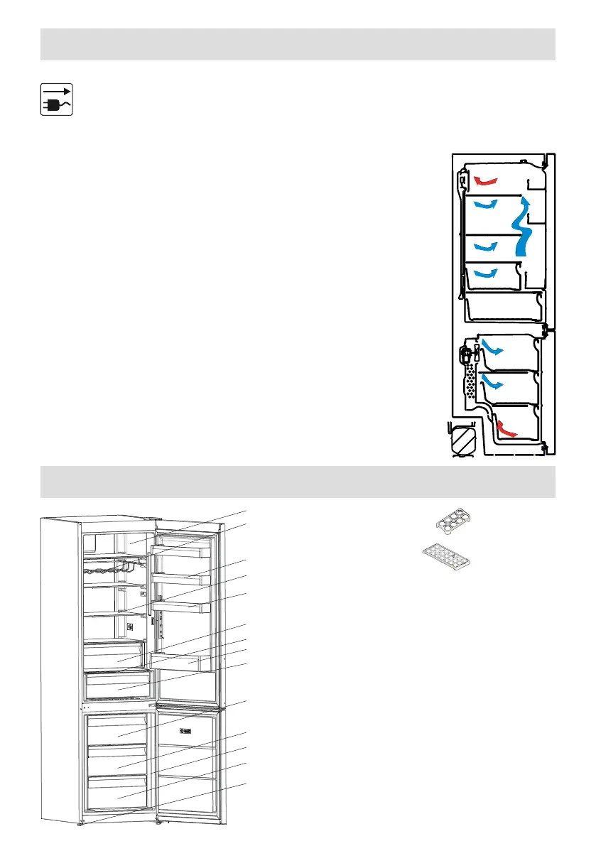 do compartimento do congelador. O ar emitido pela ventoinha localizada no topo do