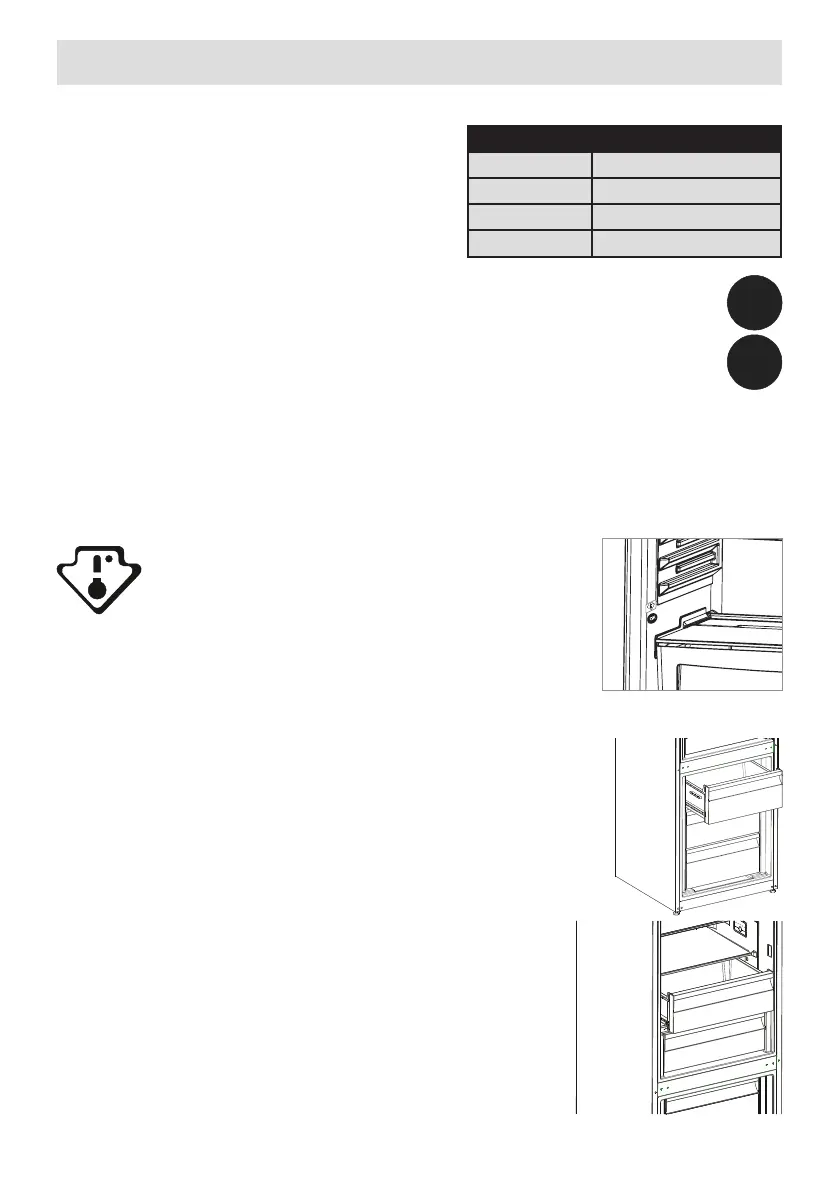 de la echa). El estante superior de la zona más fría debe encontrarse al mismo nivel
