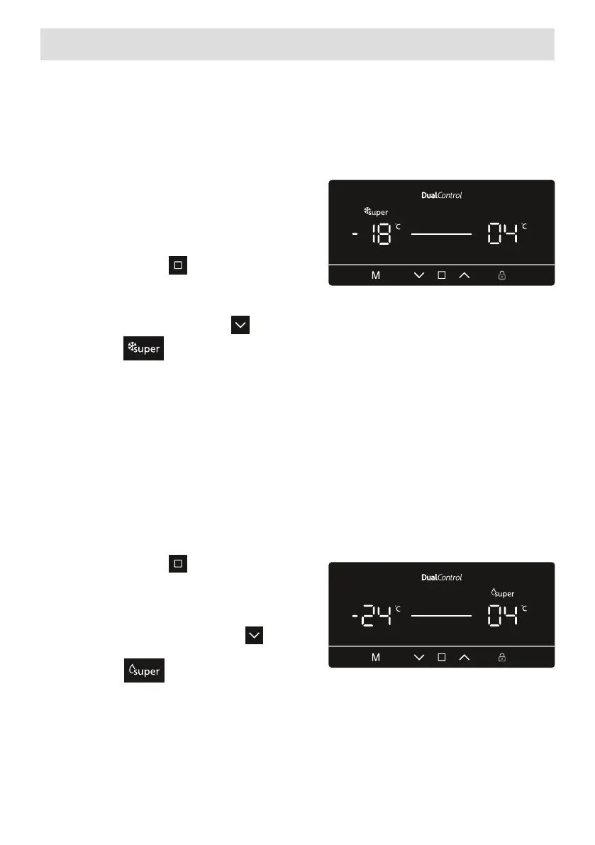 Une fois le « Mode Super Congélation » réglé, l'appareil émet un bip sonore pour conrmer que le mode est