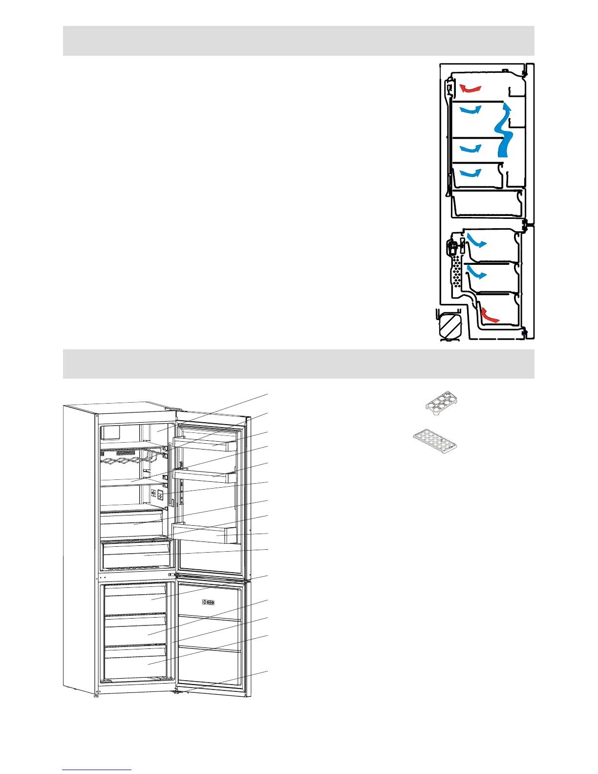 Jääkaappiosan rakenne on lähes sama kuin pakastinosan. Pakastimen yläosassa sijaitsevan