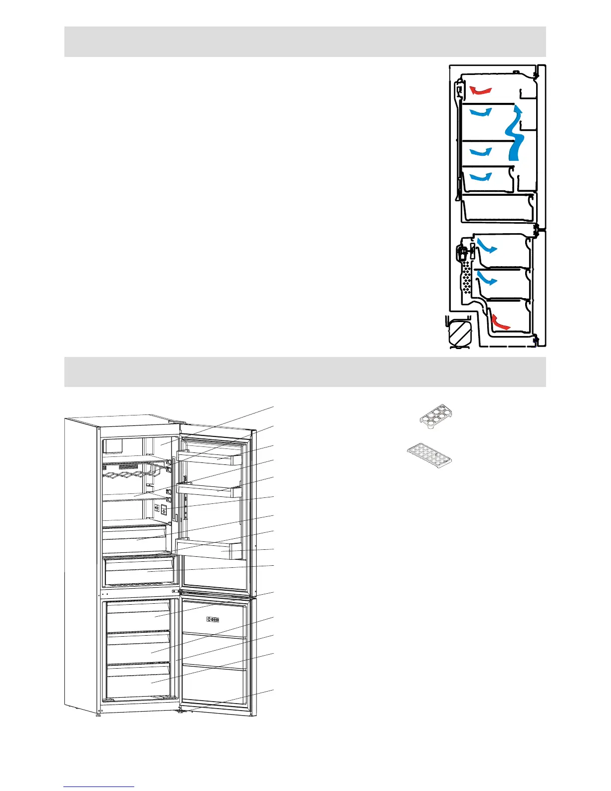 durch das Gefrierabteil geblasen. Dies verursacht, dass die kalte Luft gleichmäßig im Abteil