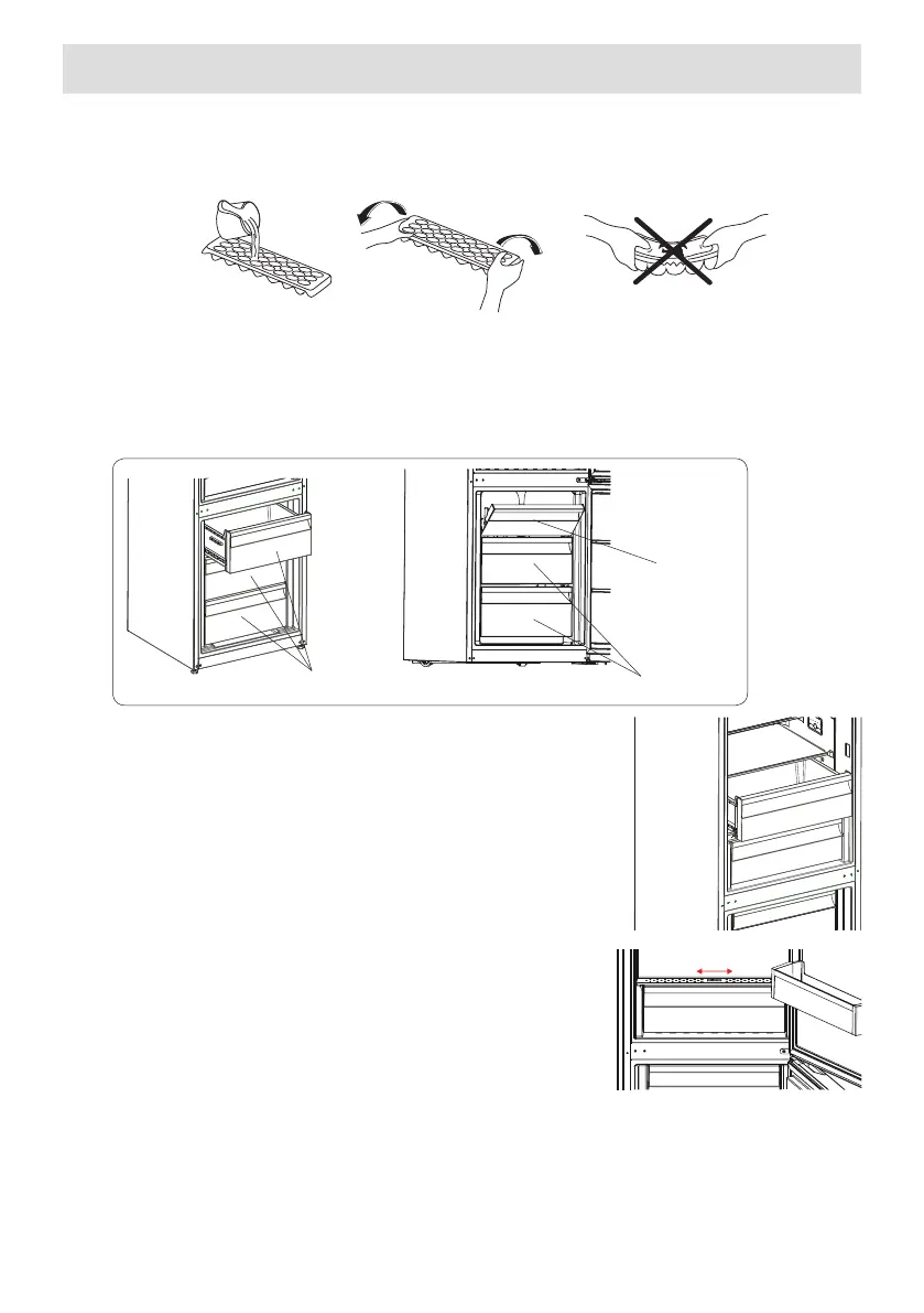 • Kun vesi on täysin jäätynyt, voit taivuttaa rasiaa alla olevan kuvion osoittamalla tavalla poistaaksesi jääkuutiot