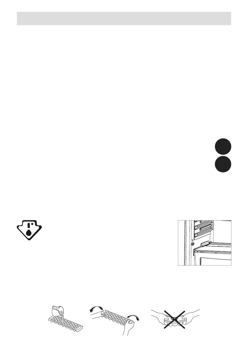 • Die Eiswürfel lösen sich aus der Schale durch Verwinden oder wenn die Eisschale kurze Zeit unter ießendes