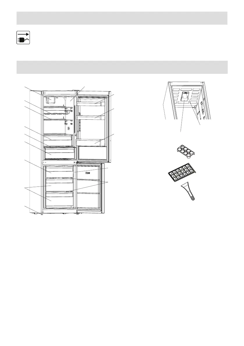 Fryserom (fryser): Mest effektiv energibruk er sikret i kongurasjonen med skuffene og beholderne i standard