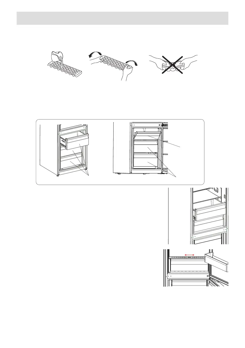 • Når vannet har frosset helt, kan du vri på isterningsbrettet som vist nedenfor for å løsne isbitene.