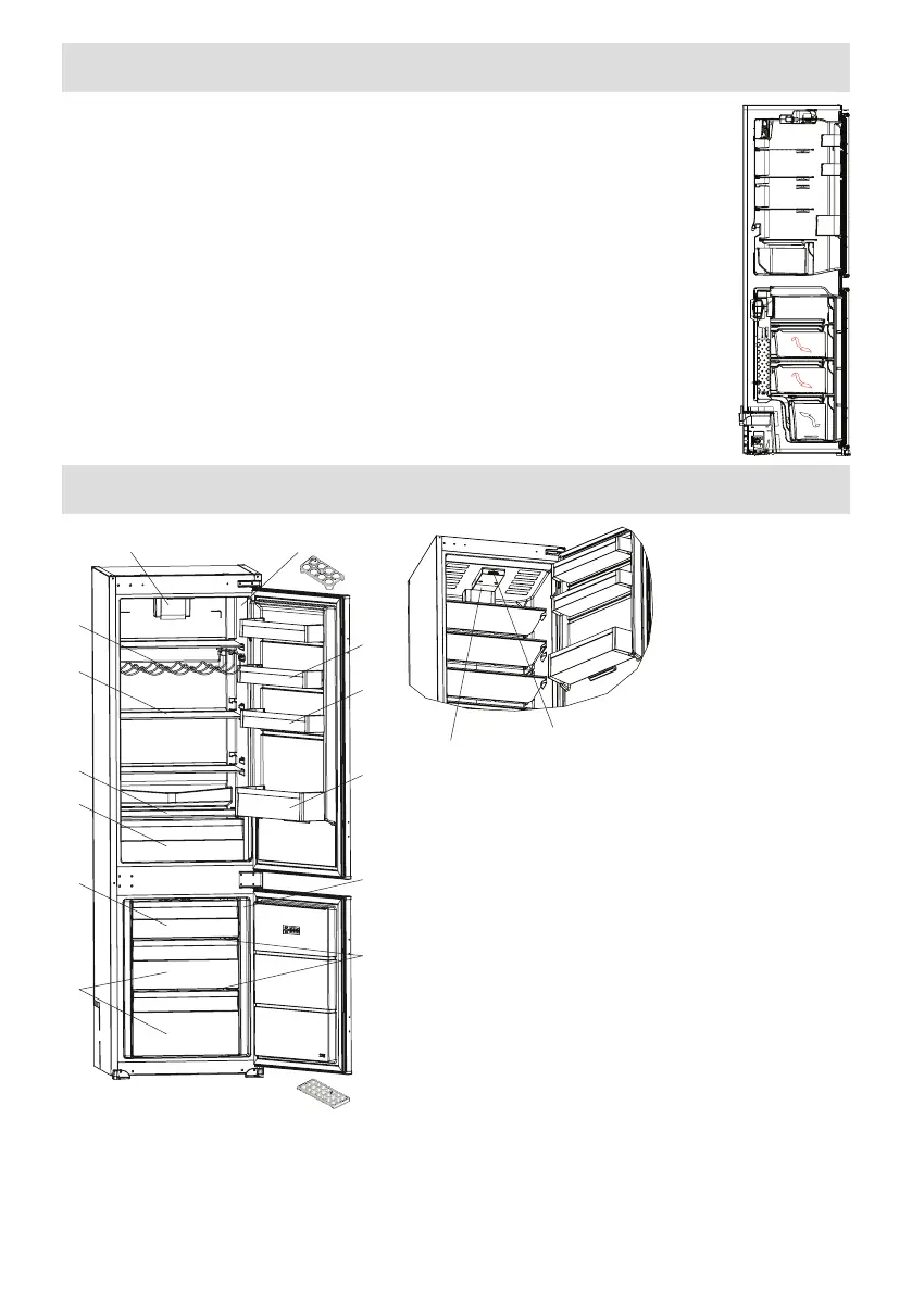 Jääkaappiosan rakenne on lähes sama kuin pakastinosan. Pakastimen yläosassa sijaitsevan