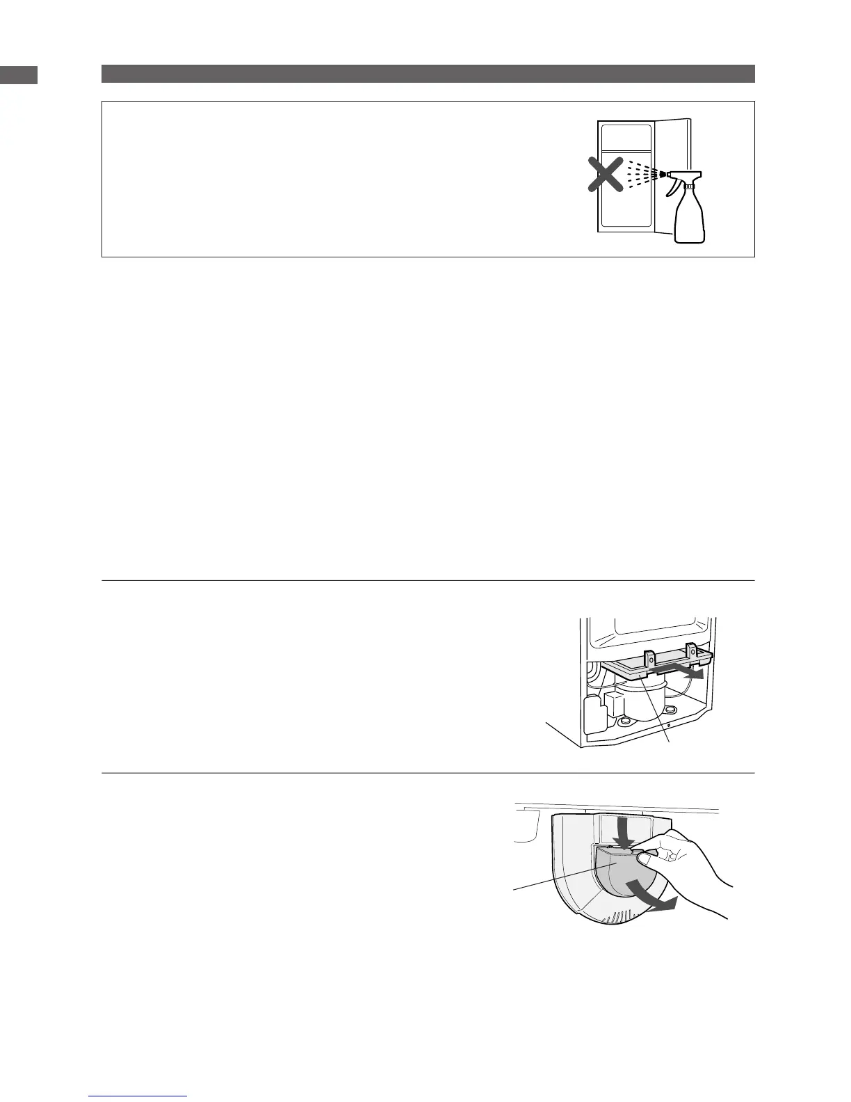 5.Whenever the refrigerator is moved to clean or repositioned, the Evaporating pan should be