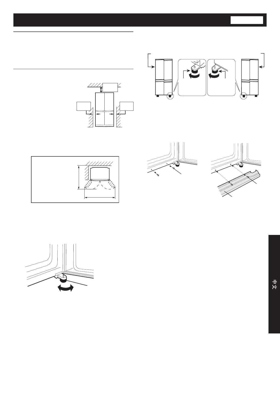 圖中顯示出安裝冰箱所需要的•