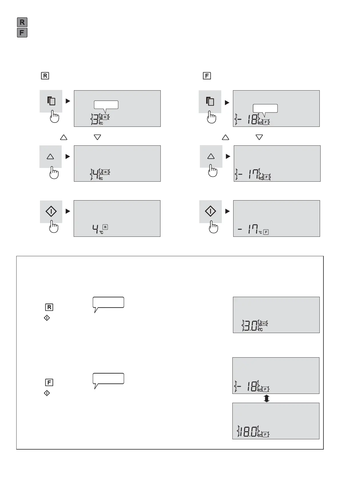顯示器所顯示的目前預設溫度將被改為 -18.0 ℃
