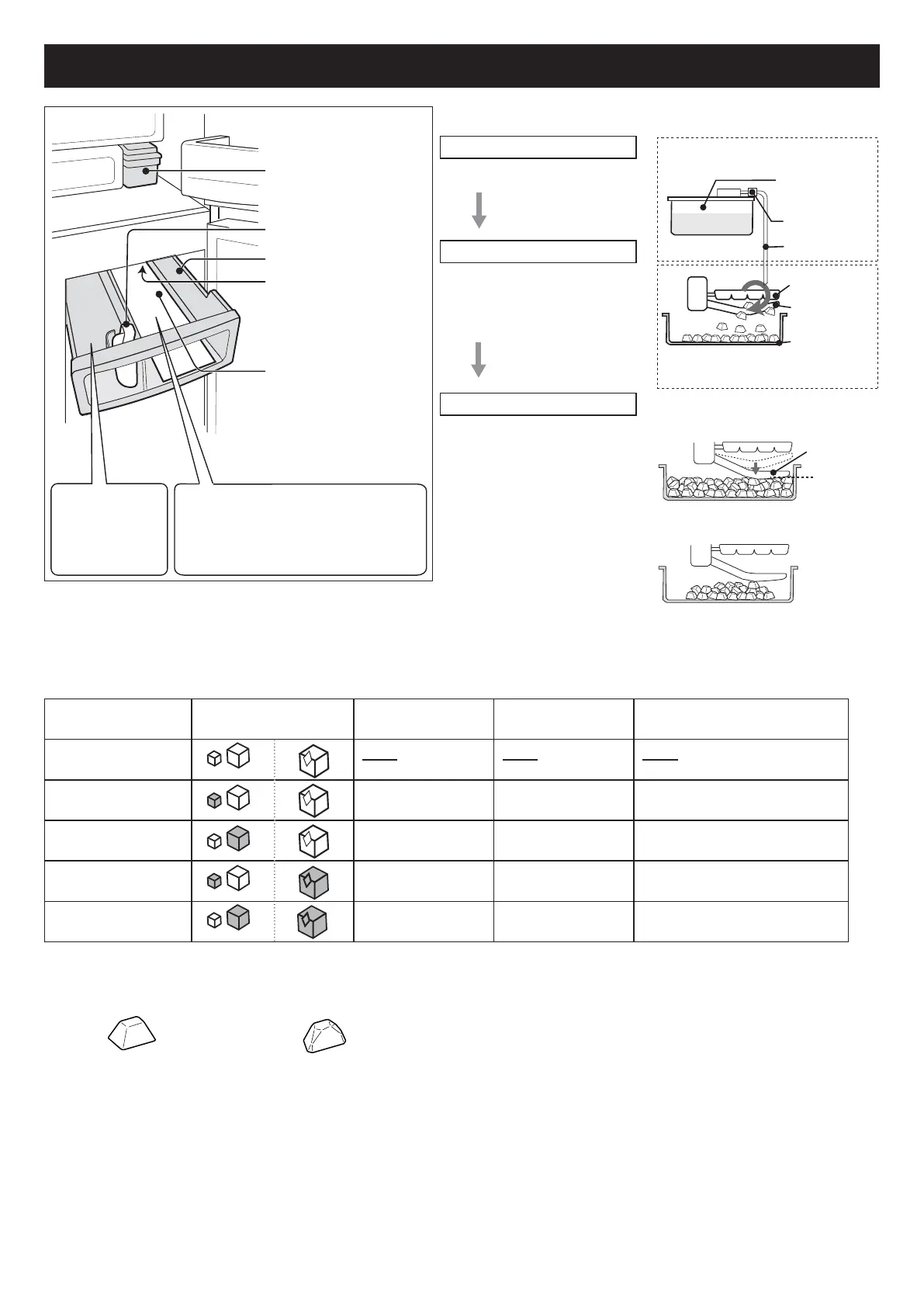 如下所示,共有 5 種製冰模式供您選擇。模式不同,所製冰塊的大小及透明度也不同。