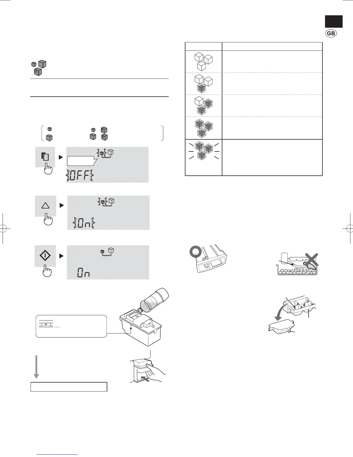 Carry out the Ice tray cleaning mode to clean the ice tray and •