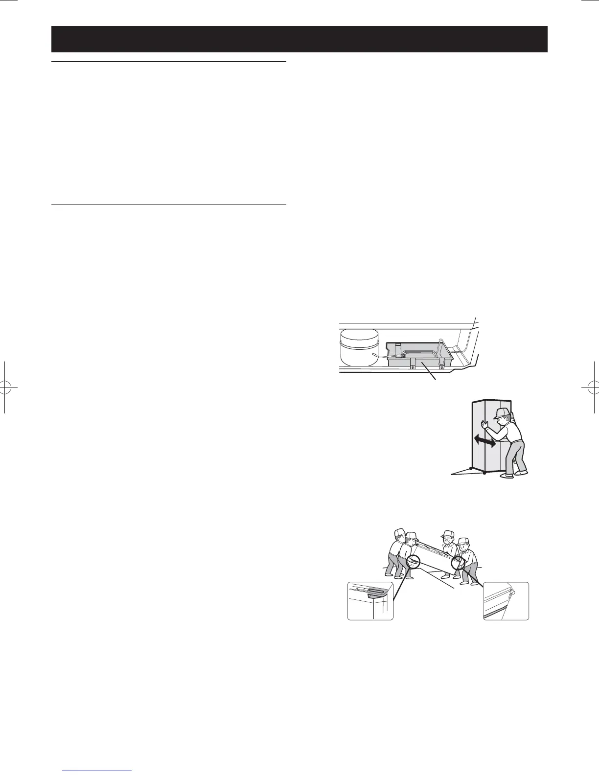 Carry the refrigerator by holding the handles located on the •