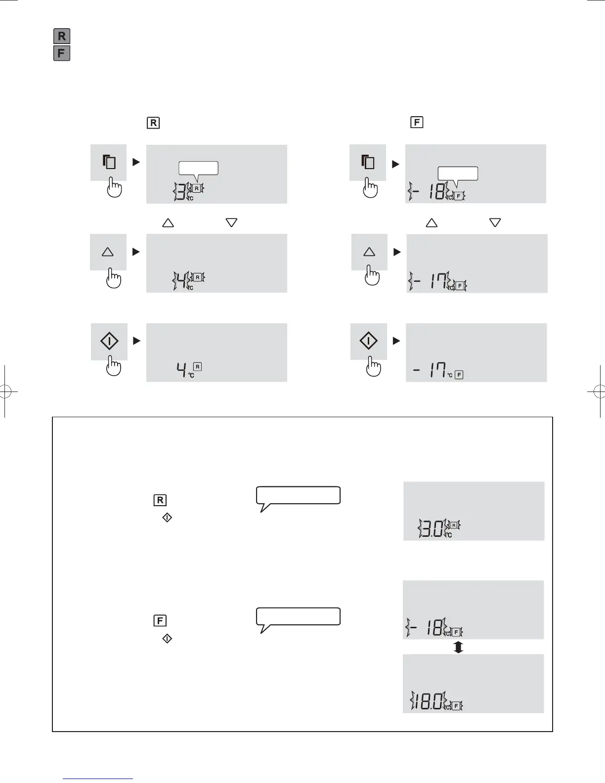 La température du compartiment congélateur et du compartiment réfrigérateur peut être ajustée par pas de 0,5 °C en suivant les