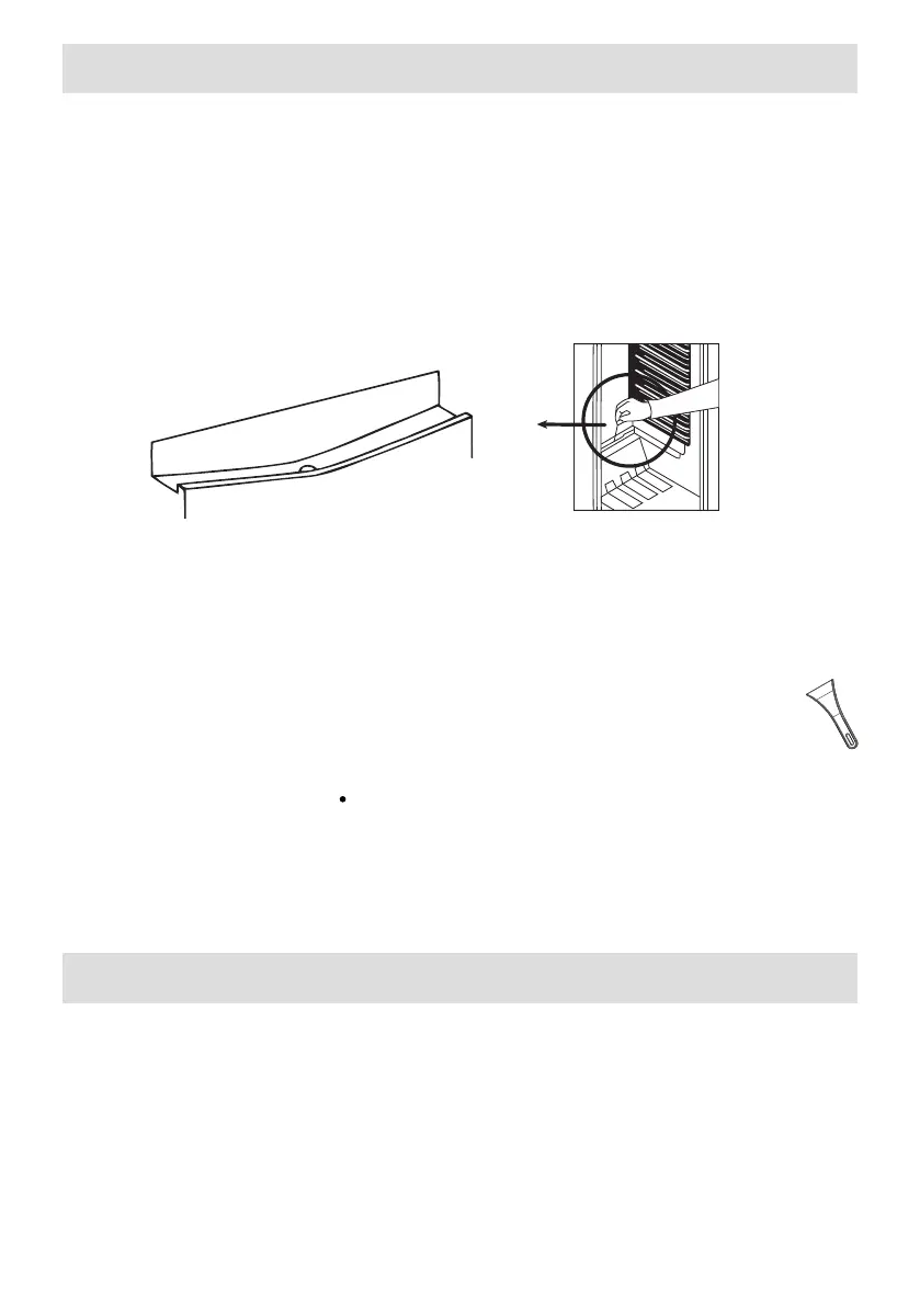 • Tauwasserablaufrinne und Ablauoch im Kühlraum häuger reinigen, damit das Tauwasser ungehindert