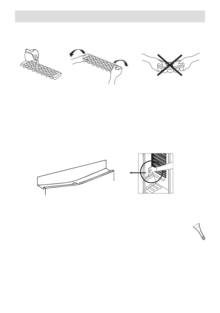 • Depois da água se transformar completamente em gelo, pode retorcer a bandeja como se mostra na Fig.