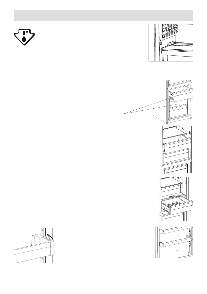 Note: Before moving door shelf is loaded, you must hold the shelf by supporting the bottom. Otherwise, door shelf
