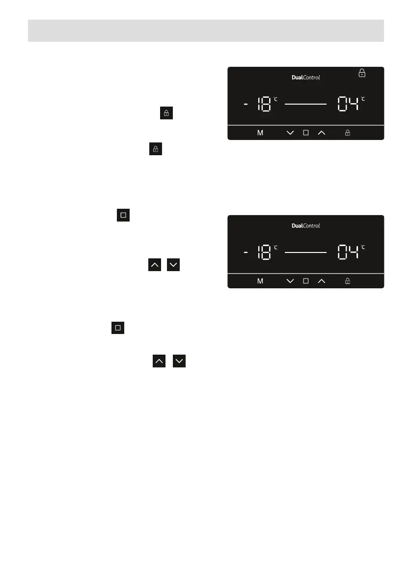 • Si le mode Super congélation ou le mode Éco sont activés, la température ne changera pas avant l'annulation