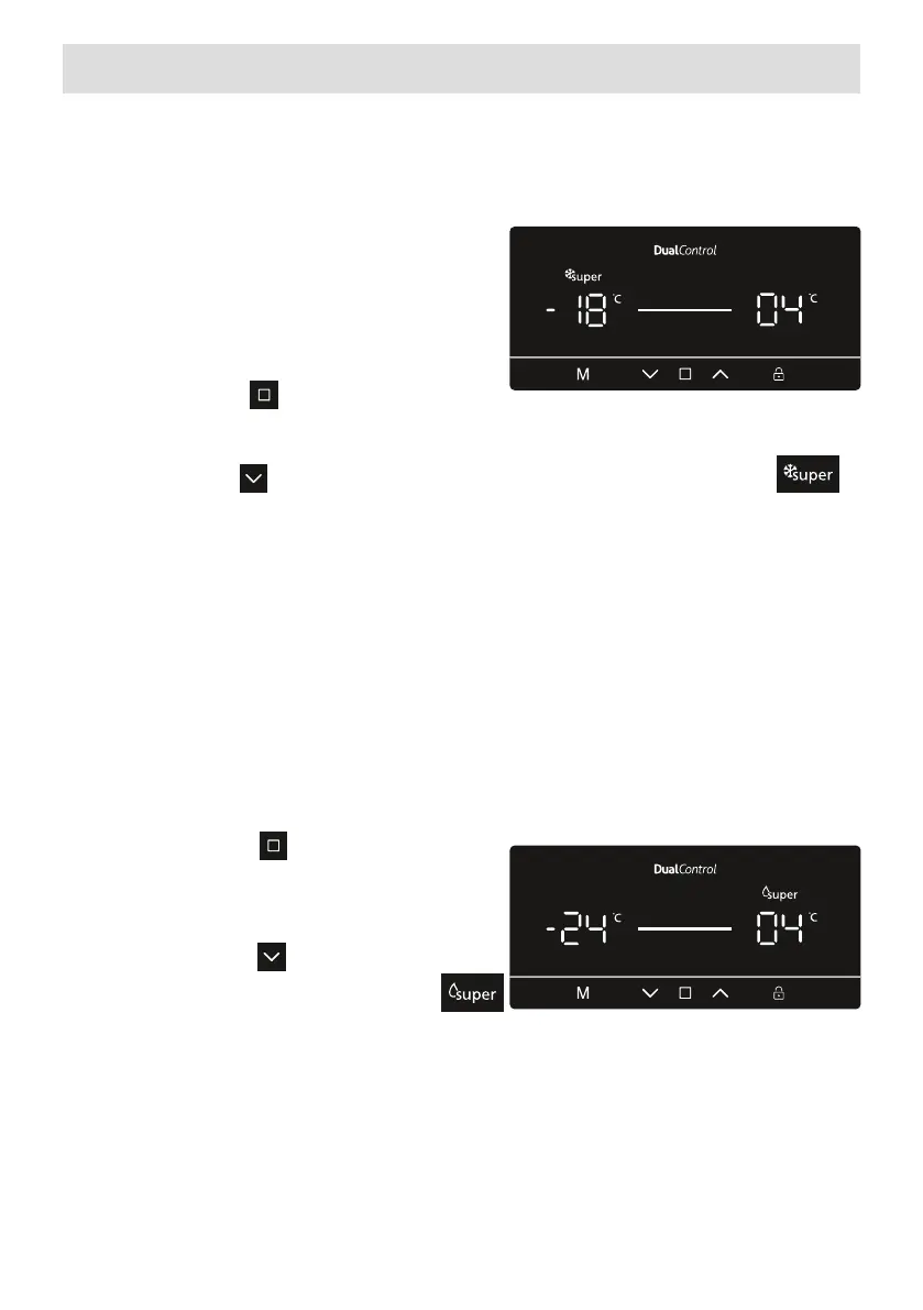 • Uma vez denido o modo de Congelação Rápida, a máquina irá emitir um sinal sonoro para conrmar que o