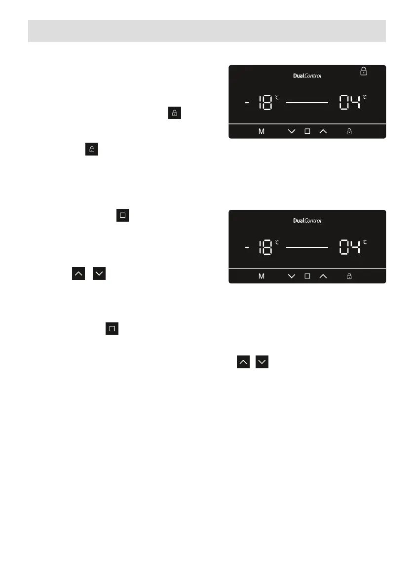 • Uma vez selecionada a denição de temperatura do Frigoríco, a temperatura irá car intermitente.