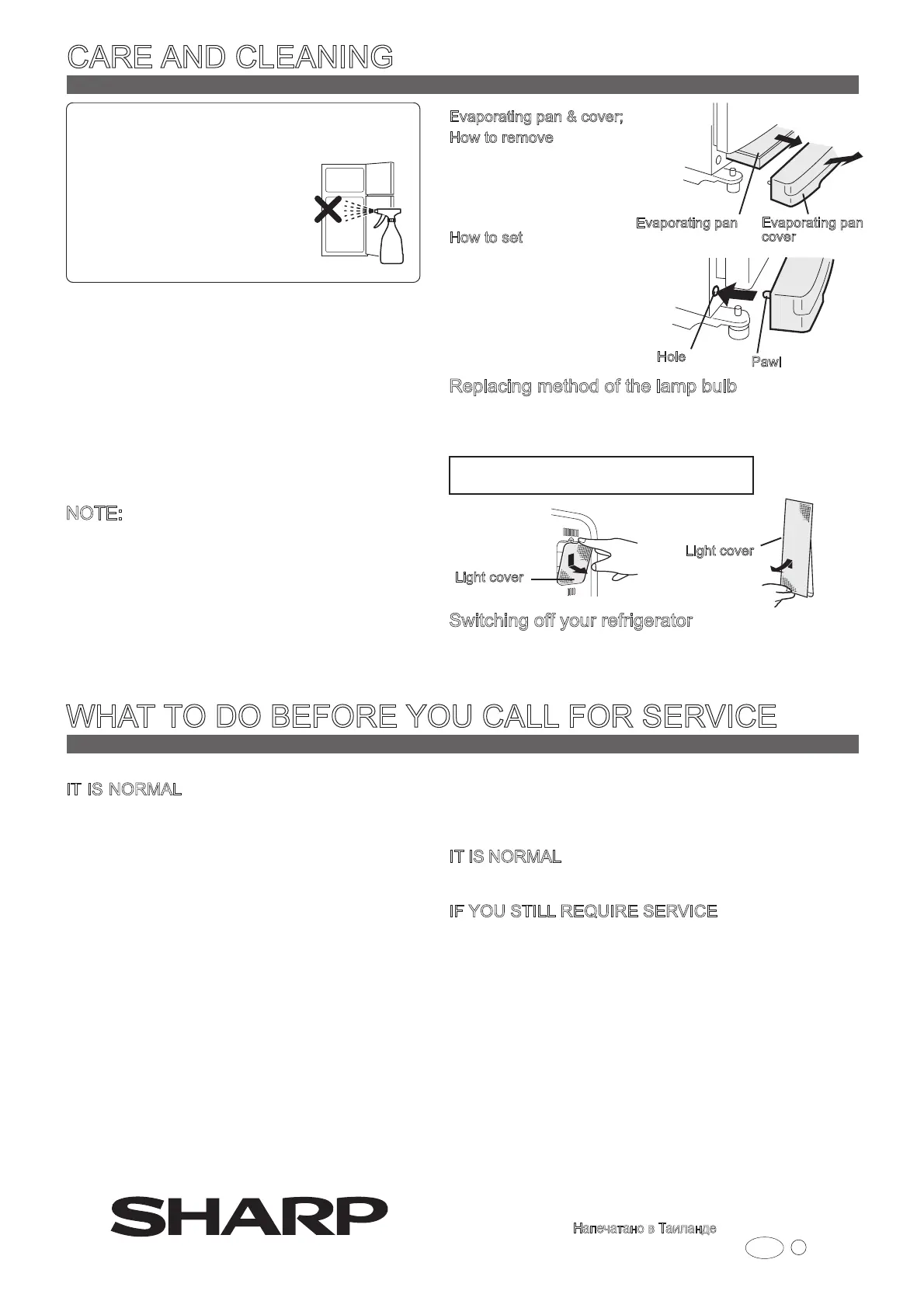 5. Evaporating pan should be removed and cleaned