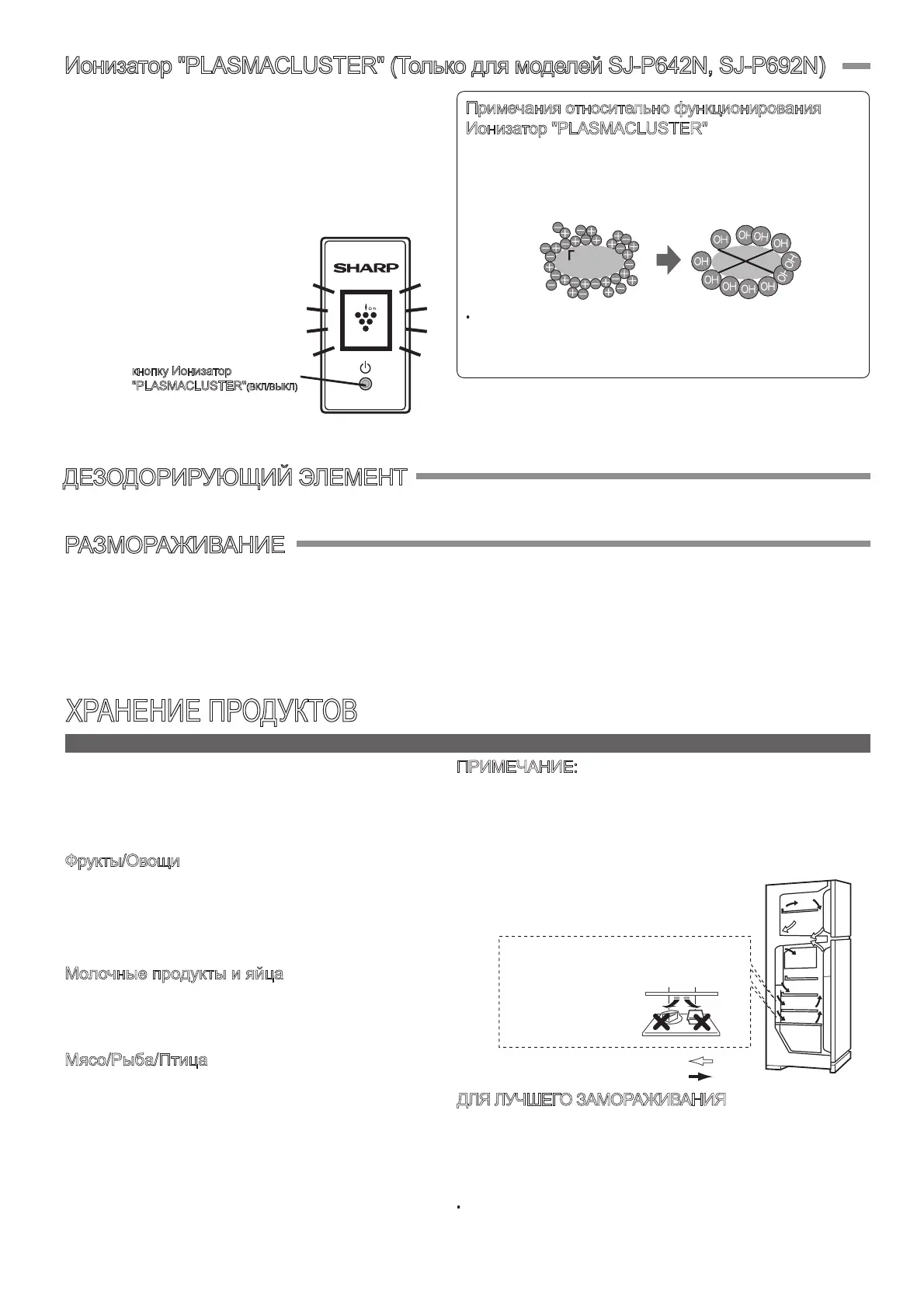 Ионизатор "PLASMACLUSTER" (Только для моделей SJ-P642N, SJ-P692N)