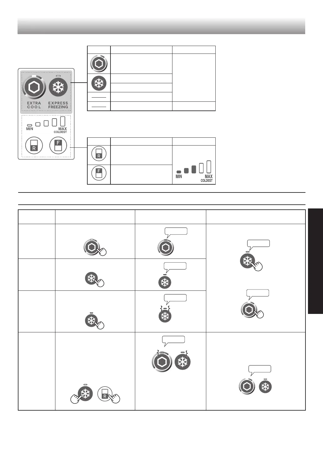 • Extra cool, Express freezing and Express cool are not available while Energy saving is ON (Beep Beep).