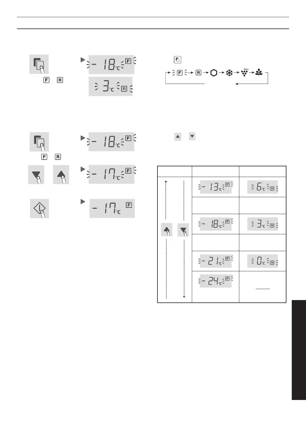 冷凍室 : 可按的 1°C 溫差在 -13°C 至 -21°C 之間調節,及 -24°C(深度冷凍)