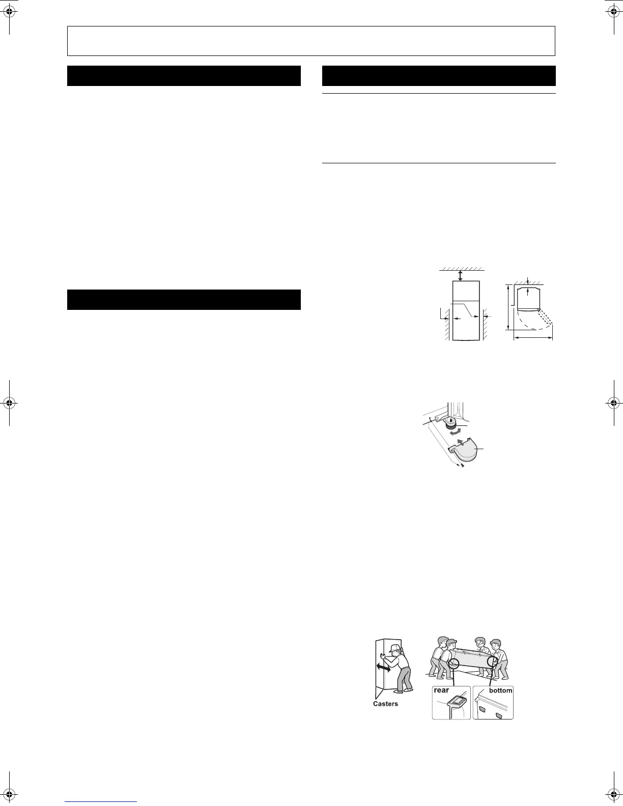 • Carry the refrigerator by holding the handles located on