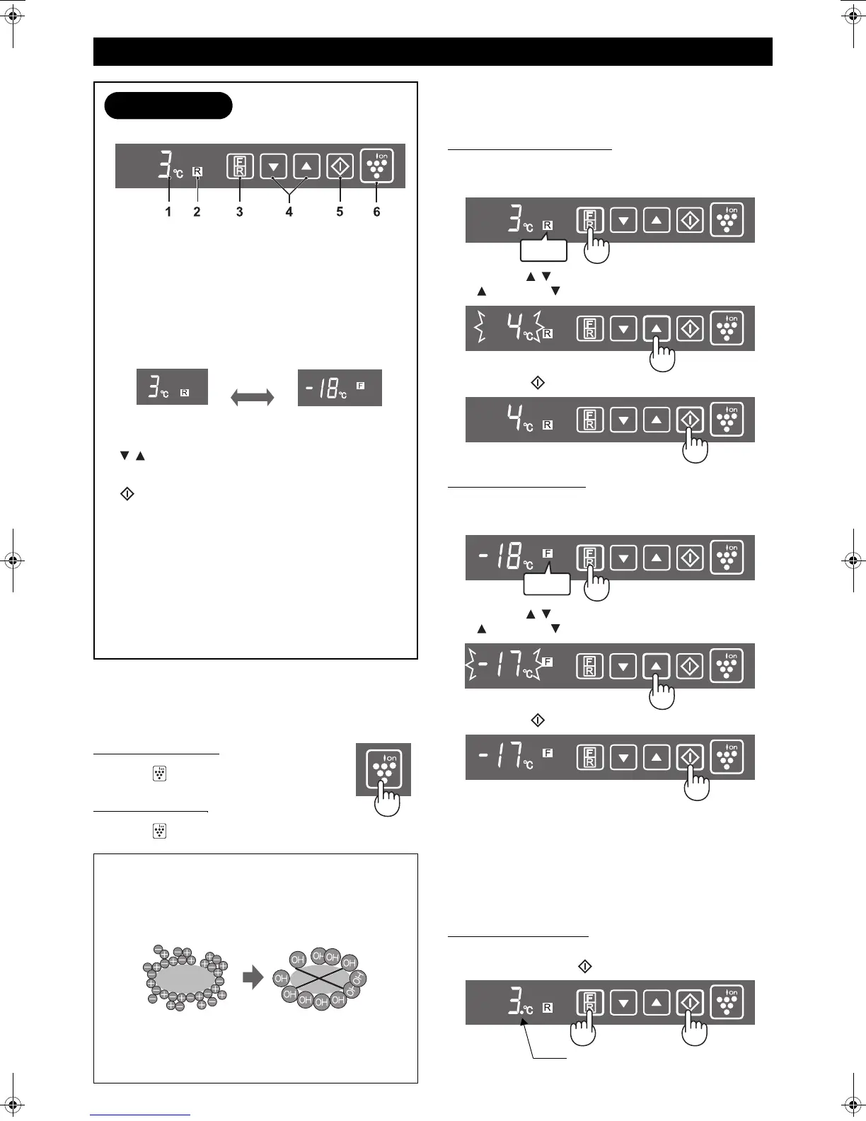 • The display for temperature setting and selected