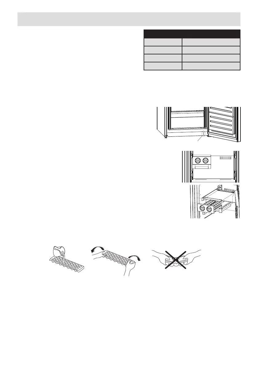 • Do not ll the icebox with water in order to make ice. It may be broken.