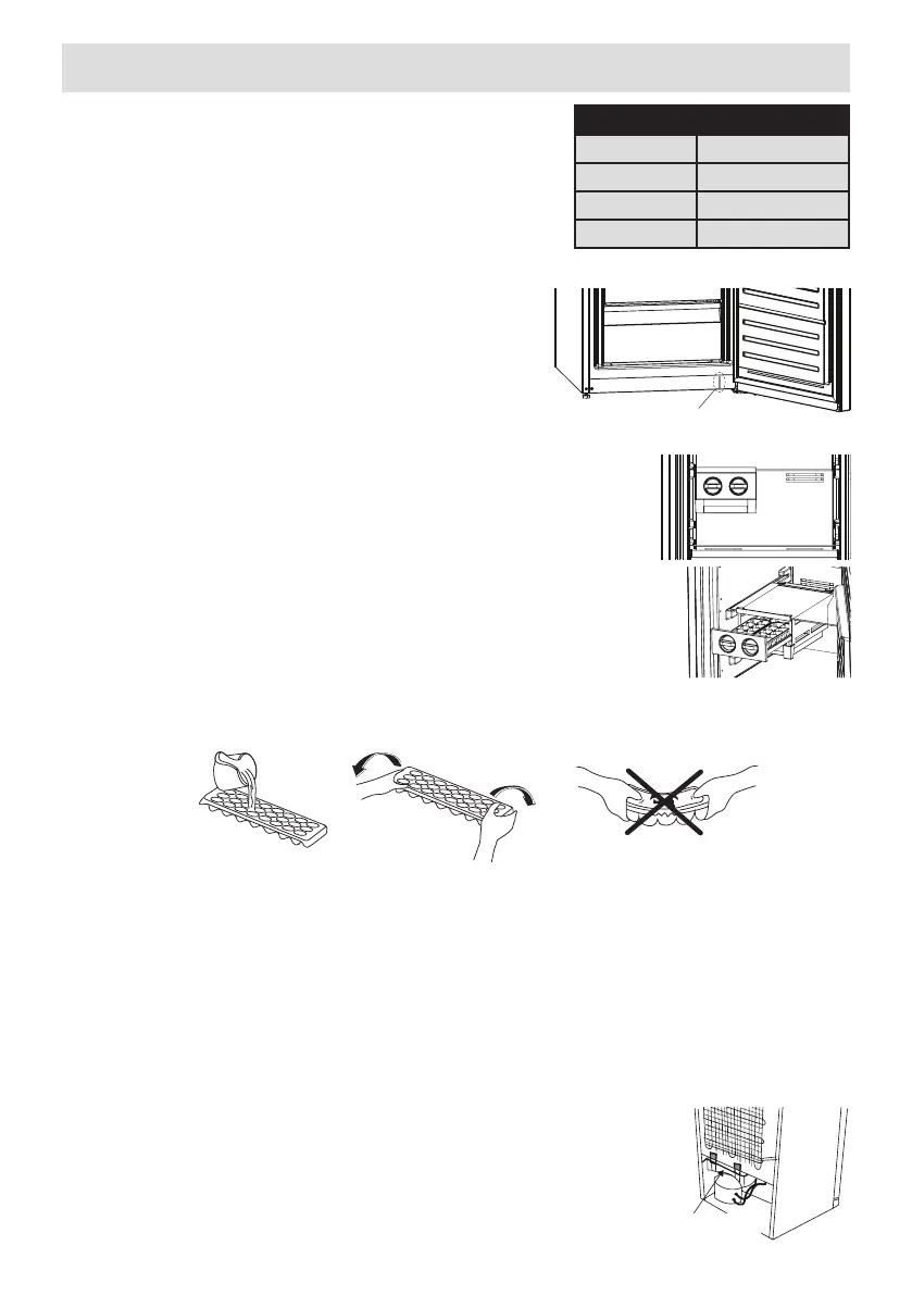 • Kun vesi on täysin jäätynyt, voit taivuttaa rasiaa alla olevan kuvion osoittamalla tavalla poistaaksesi jääkuutiot